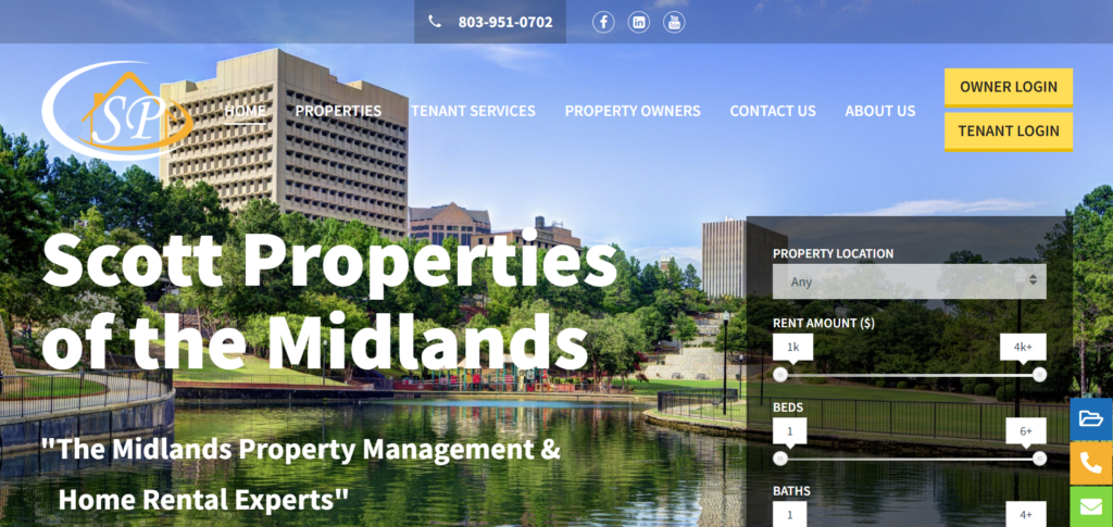 Scott Properties of the Midlands is a property management company servicing clients in the Charlotte, SC, area since 2006. The company’s mission is to “exceed property owner and tenant expectations every time without exception.” Scott Properties provides a variety of services, including professional advertising and marketing, tenant screenings, lease agreement execution, maintenance, and supervised property showings. They also provide move-in and move-out evaluations, as well as semi-annual property evaluations.